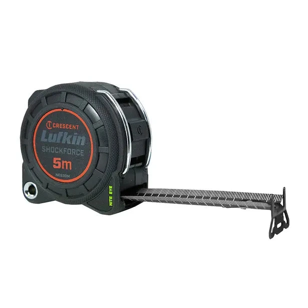 Introducing the toughest tapes to ever hit a jobsite. Shockforce Nite Eye brings new meaning to the term high performance with a full 4M of standout and the ability to survive a 30M drop. Add in a diamond coated 360-degree end hook that delivers 50% more gripping power, a two-sided blade with vertical markings on the back, and class-leading ergonomics and you have a tape that’s destined to be the new standard for trade professionals.