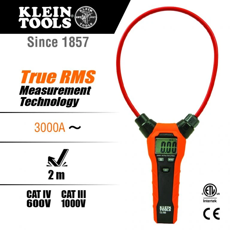 - This easy to use, stand-alone clamp meter features an 18” flexible clamp that allows access into panels and hard to reach areas (bundled wires, awkward conductors and PLC cabinets). True RMS readings with a CATIV 600V or CATIII 1000V safety rating. Features Backlit LCD Display, Auto-power Off after 15 minutes, Max/Min, Hold, Auto-Ranging and Low Battery icons