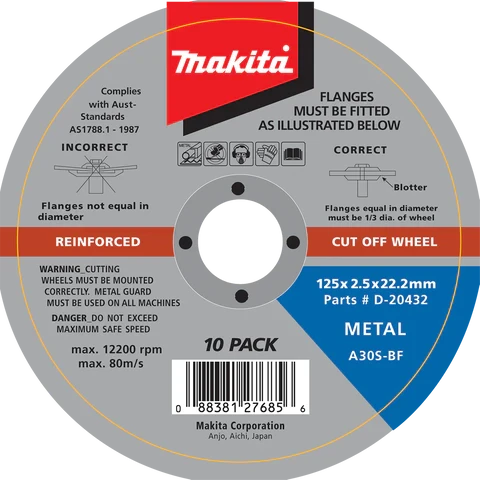 Makita 125mm X 2.5mm X 22.23mm – Metal Cutting Disc A30S – (10Pk) D-20432-10