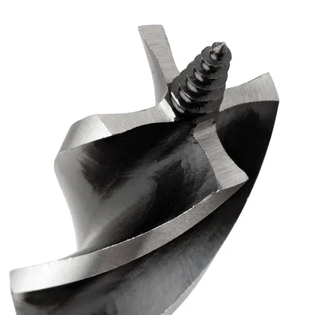- Coarse Screw Point – Draws the bit into the work piece providing fast drilling in hard and soft woods