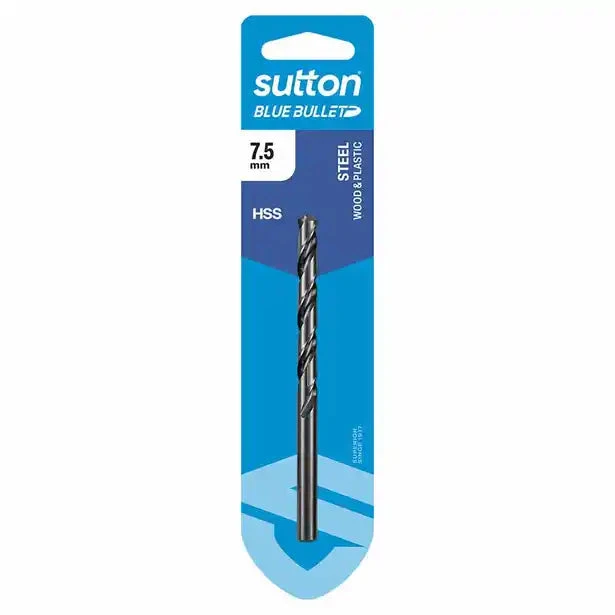 SUTTON 7.5 X 109MM HSS BLUE BULLET CARD JOBBER METAL DRILL BIT D102H0750