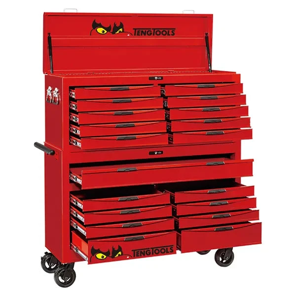 - Supplied in a red TengTools 53″ 19 drawer stack system with 10 drawer top box and the 9 drawer roller cabinet