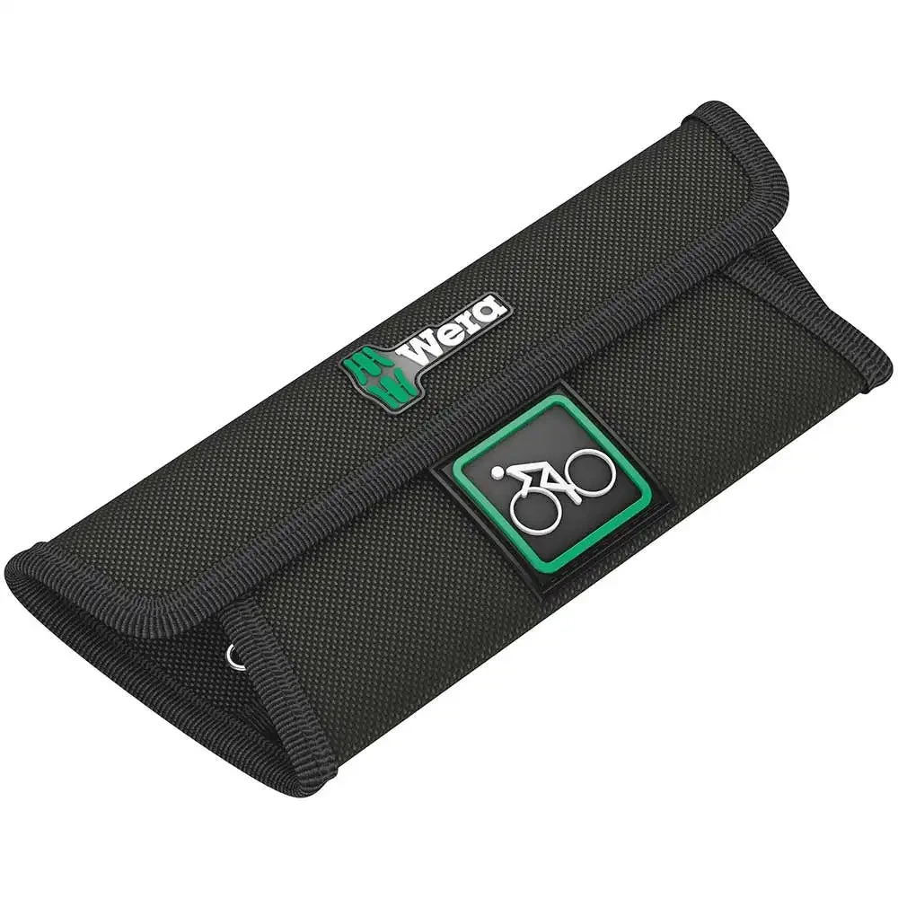 5-piece Joker 6003 spanner set; size 15 in an extra-slim design. As the working space is very narrow when working on your bike, tools are necessary that enable users to work successfully even in such situations. Narrow spaces require additional placement points of the tool. Can spanners be modified so that the placement possibilities of the tool increase? The combination of the 7.5° pivoted mouth and the double hexagon geometry doubles the placement points. A repeated 180° turn of the wrench around the longitudinal axis during screwdriving provides four placement possibilities, and bolts or screw heads can be engaged every 15°. The Joker 6003 with its smart mouth geometry significantly expands the range of uses in confined spaces. The Joker 6003 will automatically find the respective placement point after every turn. The slim yet robust ring side is angled by 15° to the tool axis. The high-quality surface treatment achieves a high and long-lasting corrosion protection. With tool finder Take it easy: colour coding by size. The Joker bags are suitable for attachment to walls, shelves, workshop trolleys and the Wera 2go system thanks to the hook and loop fastener system on the back.