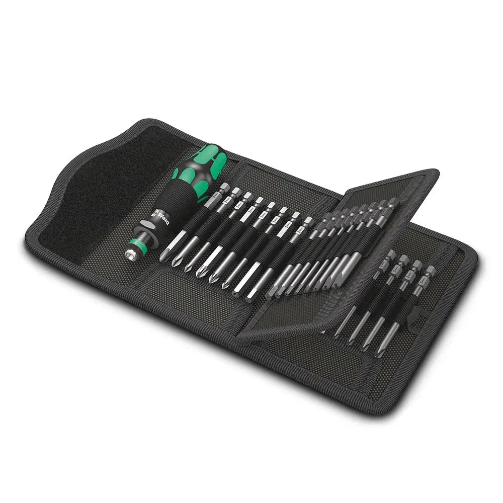 Pouch with 89-mm long bits. Includes 816 R Kraftform holder with Rapidaptor quick-release chuck and multi-component Kraftform handle for low-fatigue working. Suitable for manual and power tool operations; 33-piece.